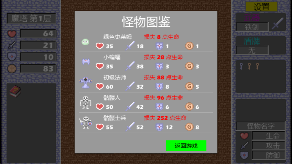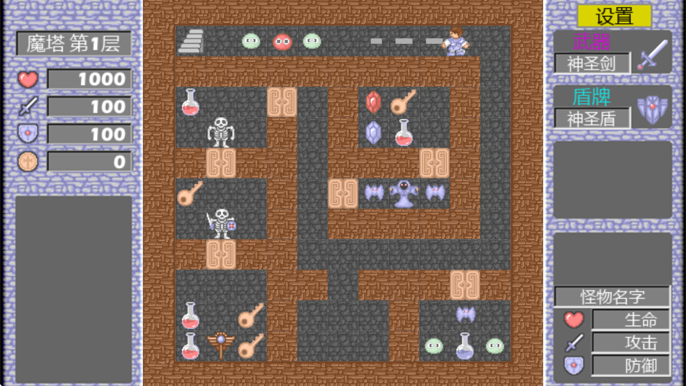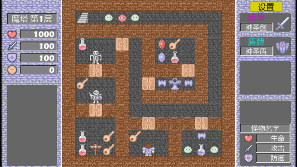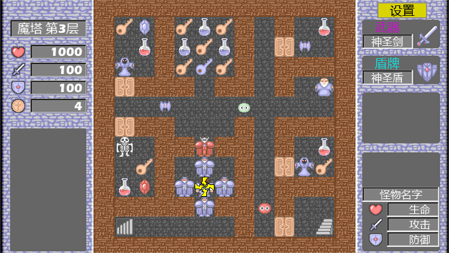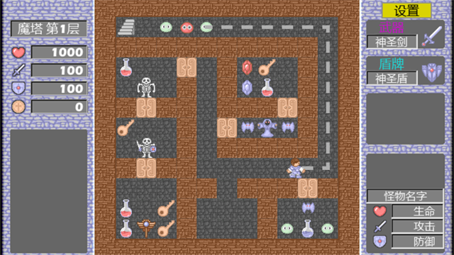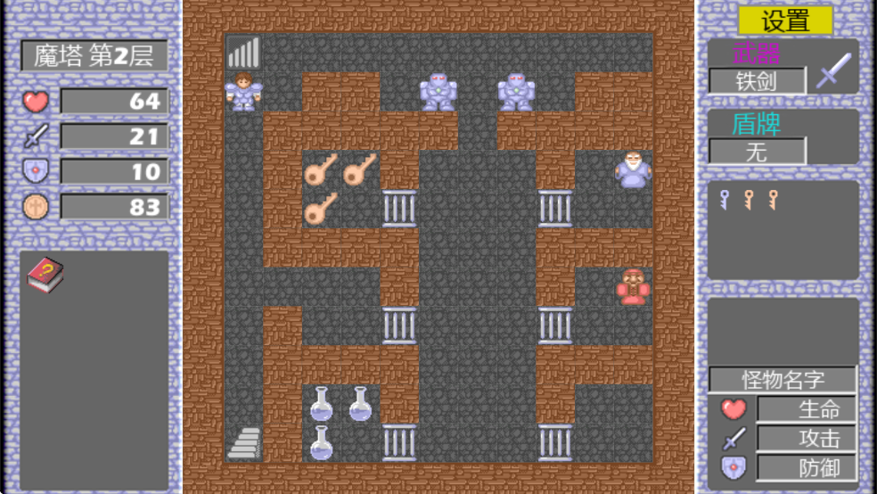 魔塔(Magic Tower)是一款经典像素风策略RPG,玩家在游戏中扮演一位骁勇善战的勇者,需要与魔塔中的怪物周旋,获取道具,搜索密道,在不同楼层之间穿梭,计算好最优路线,最终提剑讨伐魔王拯救公主。魔塔想要通关并非易事,必须要多动脑计算,游戏中还有各种各样的宝物帮助玩家通关,和每个NPC的对话都需要仔细看,有时候走错一步也会导致游戏的失败!