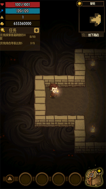 5、时间在地图下面,时间到了的话,可以继续游戏,也可以继续下楼,但不能进下一个五层,一到五层,六到十层这样为一个阶段,每下到新的一个五层,时间就会重置到十分钟。