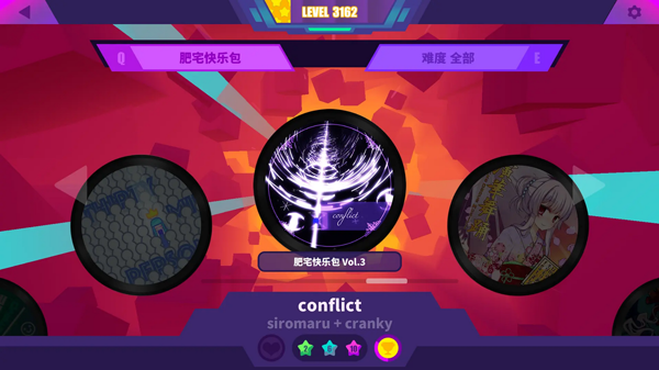 2、难度适中,各难度级别过渡平缓,作为一个音游小白,我觉得非常容易入手,并且能从这种平缓的难度提升感觉到了自己的成长。