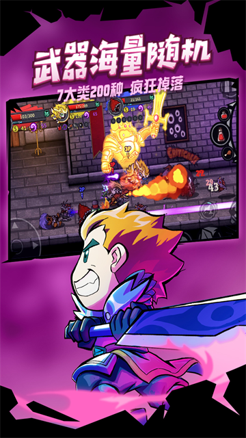 3、武器海量随机:7大类200种疯狂掉落,每把武器都拥有各自位移动作与攻击技能。