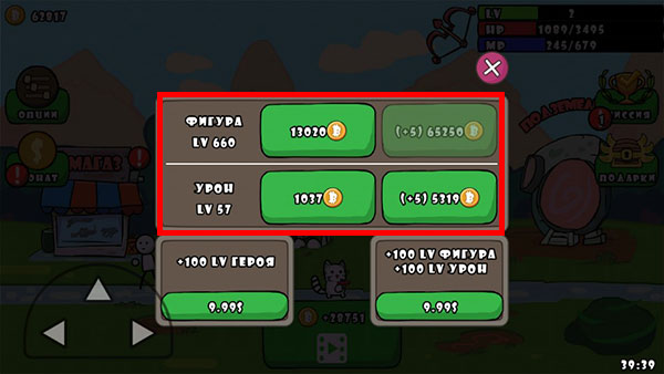 2、点击绿色图标即可升级,左边的每次点击升一级,右边每次点击升5级。