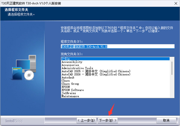 2、直接默认选择安装程序将安装的功能点击下一步;