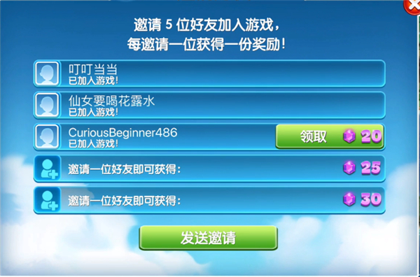 如果是你一个设备注册账号领取钻石,尽可能通过点击你复制到备忘录的那个邀请链接进入游戏!