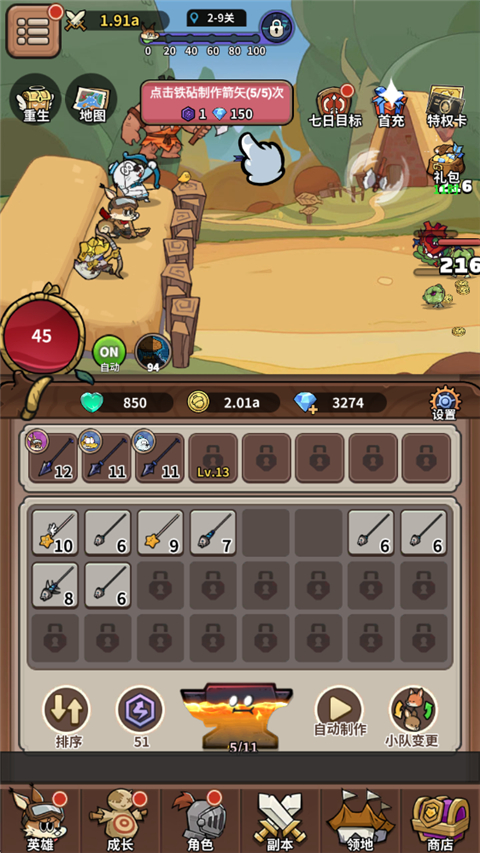 2、箭矢突破,火力进阶伤害爆表。