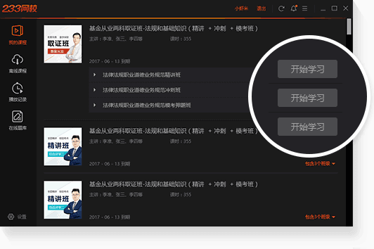 提供具有丰富从业经验、专业知识储备和行业较高知名度教师精品视频课程,为不同基础的学员设置课程,如预习班、精讲班、冲刺班、习题班、模考押题、全科VIP班、单科VIP班等。课程支持试听以及离线观看,节省流量,学员还能评论答疑,互动学习