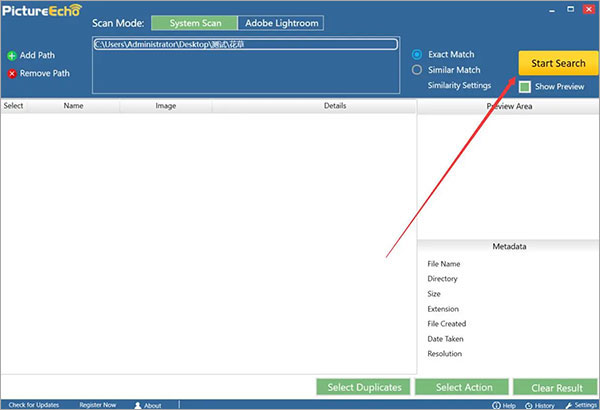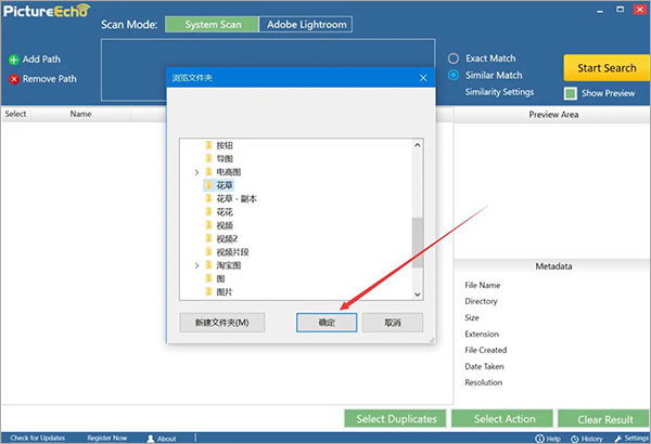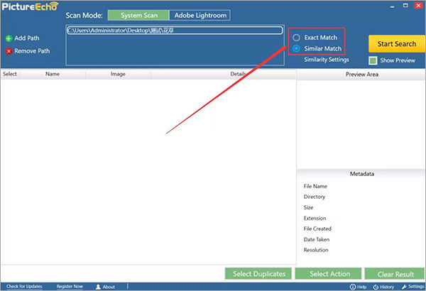 3、然后,我们回到操作界面,根据自己的需要选择扫描重复图片的方式。“Exact Match”是扫描完全相同的图片而“Similar Match”则是扫描相似的图片;