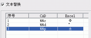 CAD有些特殊的字符表示方法,如"%%c"显示为"φ",但输出到Excel后,仍显示为"%%c",使用文本替换,就可以在Excel中正确显示这些符号。