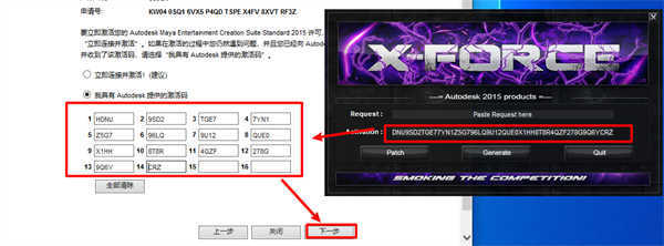 9、将生成的激活码复制到激活码输入框,点击“下一步”