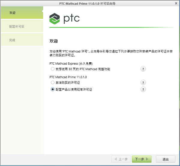 9、在Mathcad Prime 11.0 启动时,会在 PTC Mathcad 许可证向导中询问是否获得许可: