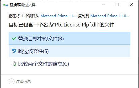 8、将补丁文件夹Mathcad Prime 11.0.1.0里面的文件复制到软件目录中,选择替换。(默认安装时: C:\Program Files\PTC\Mathcad Prime 11.0.1.0 )
