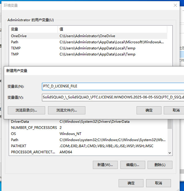 3、创建指向 PTC_D_SSQ.dat 的环境变量 PTC_D_LICENSE_FILE