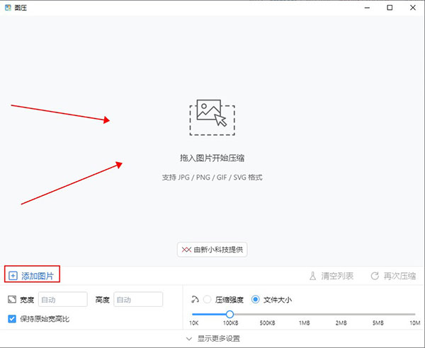 支持 JPG/PNG/GIF/SVG 等多种图片格式进行压缩。
