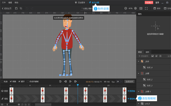 万彩骨骼大师简单4步教你使用人物模板制作动画角色