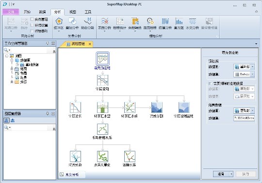 SuperMap iDesktop 7C支持多种空间分析工具,包括缓冲区分析、网络分析、拓扑分析、空间查询和统计分析等。这些工具可以帮助用户进行空间数据的挖掘和分析。