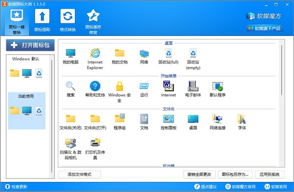 3、对电脑中默认的图标进行一键替换,软件支持批量提取和单个提取