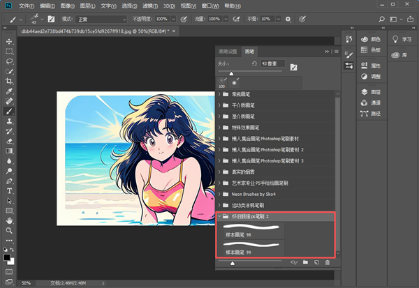 3、之后再画笔工具,就可以看到添加成功的懒人集合画笔素材包了。