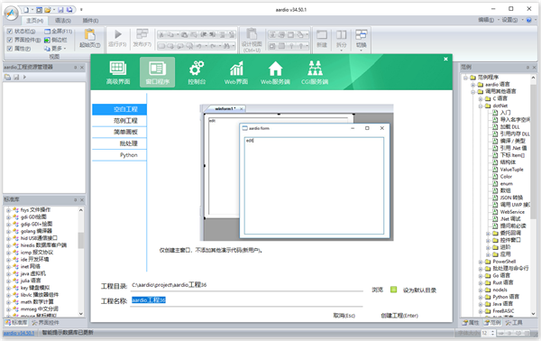 aardio是一款专用于桌面软件快速开发的编程软件,软件内提供了大量开源的标准库、扩展库,这些库基本都是由纯aardio代码实现,涉及到了桌面编程的方方面面。aardio为每一个库的每一个接口函数都编写了文档,并且提供了大量的演示范例。aardio 使用流行的类C语法(非常接近Javascript),在设计中尽可能的避免哗众取宠、标新立异,并且吸取和借鉴流行语言的习惯用法。不少aardio用户都表示只要有一点编程基础,aardio几乎不用特别学习,看几天就会用了,仅仅是复制拼凑范例都能快速开发出不错的软件。完美支持静态类型、动态类型,完美支持com、dll api、remote exe call api。主要面向小型轻量快速开发应用,专用于模拟自动化、web自动化、自动化测试、机器人程序开发。