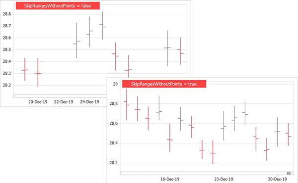 包含一个新的SkipRangesWithoutPoints选项。启用它可以自动排除所有没有数据点的轴范围。此功能对财务图表特别有用-您不再需要手动定义非工作日期间隔。