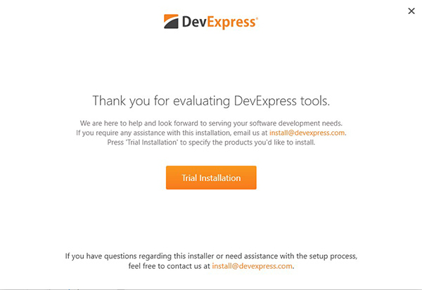 2、双击“DevExpressUniversalTrialCompleteSetup-20200430.exe”进行安装,点击trial installation;