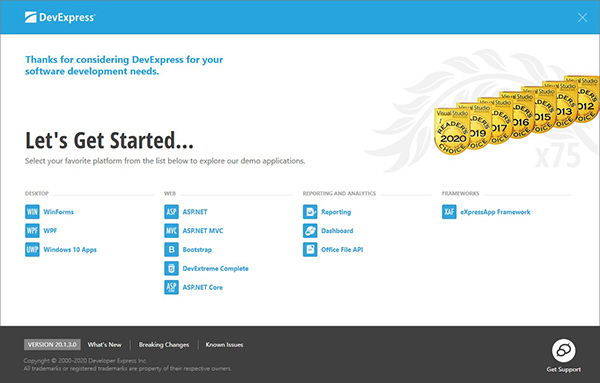DevExpress很荣幸在今年的Visual Studio杂志读者选择奖中被评为19次最佳。