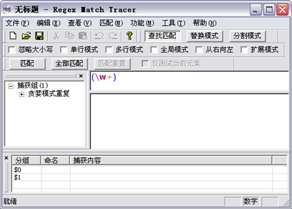 2、同步将正则表达式的组成显示在 "树结构" 和 "分组列表" 中,使正则表达式结构一目了然。