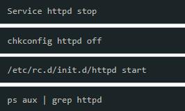 apache命令: /etc/init.d/httpd(start|stop|restart|reload|status)