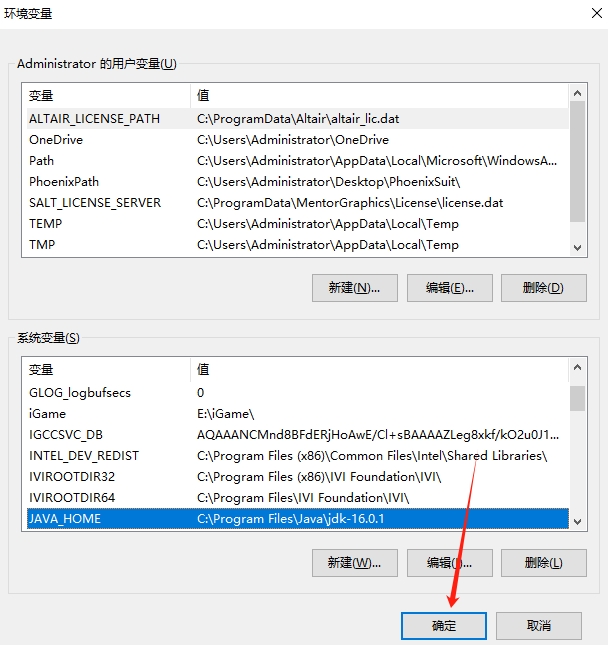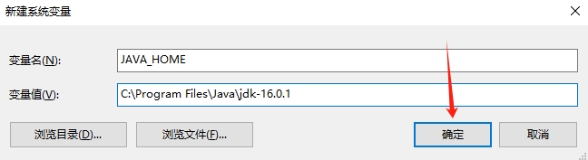 变量值:C:\Program Files\Java\jdk-16.0.1 (变量值是JDK的安装路径)