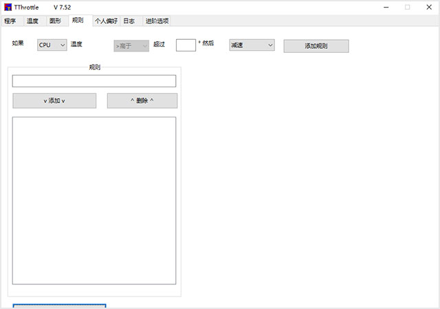 3、能够自己创建规则。当cpu、gpu超过设定温度后,就可以作出行为,行为包括:减速、警报、关机、重启等等。