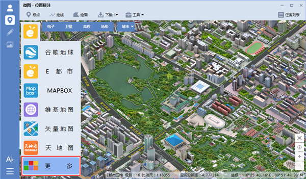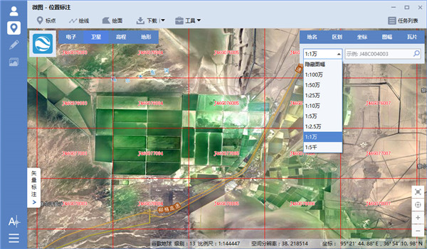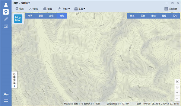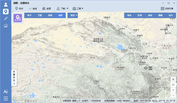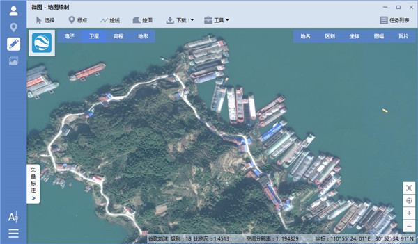 3、导出无限制大图(可分块导出)、导出瓦片(可重投影)、导出地图离线包、矢量点标注、矢量路径绘制、矢量面状轮廓绘制。