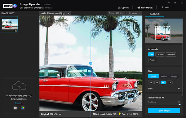 我得说,Nero AI Image Upscaler这款工具真的挺让我惊喜的,它把复杂的图像处理变得特别简单。作为一个经常需要处理图片的人,我最怕的就是那些需要专业门槛的软件,但这个完全不需要,你只要上传图片,选好增强效果,AI就能在几秒钟内自动帮你把模糊、像素化的照片变成高分辨率的清晰作品,这种傻瓜式操作对新手太友好了。它背后的AI算法很聪明,不只是简单粗暴地放大,还能识别照片里的细节和特征,让修复后的画面看起来自然又真实,不会假惺惺的。功能上也很实用,比如我有时候想把手机里的老照片做成高质量的相册或者海报印刷,用它放大后细节依然保留得很好;或者想在社交媒体发图,用它处理一下清晰度立马提升,完全不用担心画质被压缩。而且它支持Windows 11和10,操作起来毫无压力,点击几下就能无损放大,省时省力。总的来说,这工具确实解决了我很多图像处理的痛点,让修图变得轻松又高效。Nero AI Image Upscaler是Nero公司开发的一款简单好用,功能强大的AI图像品质提升工具。它是一款由AI驱动的工具,可以在几秒钟内自动提升图像的等级。这款工具的主要功能包括图像放大,它能够将模糊、像素化的图像转变成令人惊叹的高分辨率作品。用户界面设计得非常直观,使得使用起来非常简单。不需要深入了解复杂的图像处理技术,用户只需简单上传图像并选择所需的增强效果,软件将在短时间内提供优质的结果。Nero AI Image Upscaler工具背后的人工智能算法是其巨大成功的关键。它不仅能够简单地放大图像,还能够根据图像的特征和模式进行智能的图像增强。这意味着它能够根据照片的内容识别并恢复细节,使得图像在提升后看起来自然而清晰。