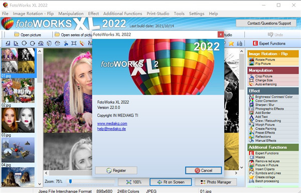 Fotoworks XL提供了优质照片编辑软件可能需要的所有内容,并且培训时间最少。图片编辑器中的详细帮助说明说明了各种功能,并对图片编辑器的各个操作提供了全面的说明。