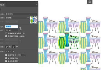 5、用选择工具选择该矩形后,打开对象菜单图案里的建立选项打开,拼贴类型选择网格,高宽进行适当的调整,按缩放的完成选项退出或者按ESC键,确定;