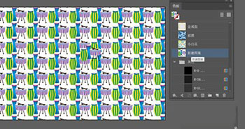 6、打开窗口菜单里的色板面板,这时在颜色选项下回多出一个图案出来,选择矩形图层后,在色板里找到刚才设置的图案后,把其拖拽到矩形框中即可,最后在进行适当的外观修饰下接近完成图案的填充效果。