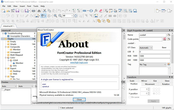 8、至此,FontCreator Pro软件即为安装注册成功!
