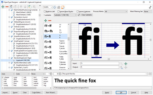 直观的 OpenType 设计器允许您轻松生成和修改用于字形替换和字形定位的 OpenType 布局功能。内置的锚点管理器使添加和编辑标记到基础和标记以标记定位变得轻而易举!