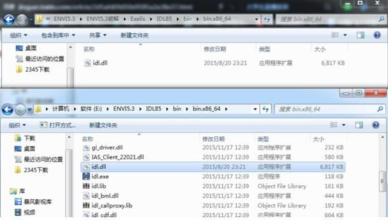 我们将补丁文件里的“IDL85”下的“idl.dll”文件复制到安装目录下的相同文件夹下就好,如下图是补丁文件中“idl.dll”的路径和安装目录下的相同路径: