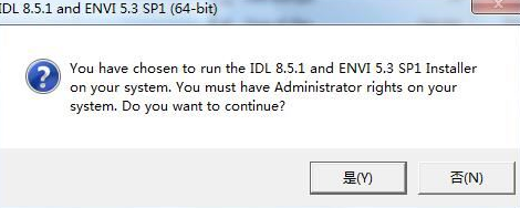 2、接下来,我们点击“IDL_ENVI53SP1win64.exe“开始安装。在接下来弹出的是否拥有管理员页面时,选择“是”,进行下一步: