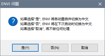 选择“是”或“Yes”,ENVI将自动重启,并切换为目标语言