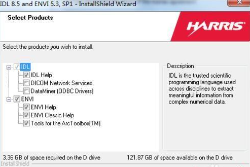 5、上一步点击Next之后,弹出安装产品的选择页面,默认就好,接下来就是ENVI安装了,如图: