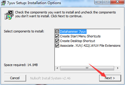1、软件下载解压完成后,点击7yuvSetup-2.5打开软件安装包,点击next开始安装7yuv软件。