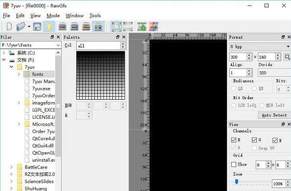 7、原始图形图形格式,多种选择模式:RGB,YUV,调色板索引,Amiga的位平面