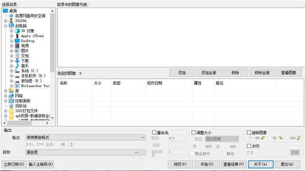 1、Batch Image Resizer汉化版是专门用于电子照片批处理的工具,能够对于图片进行调整大小,旋转,添加水印和转换格式操作。2、用户可以自定义和编辑电子照片,例如重命名,大小调整,图形旋转,输出格式,输出目录,水印添加,结果查看等,具有丰富的功能,并支持同时处理多张电子照片。