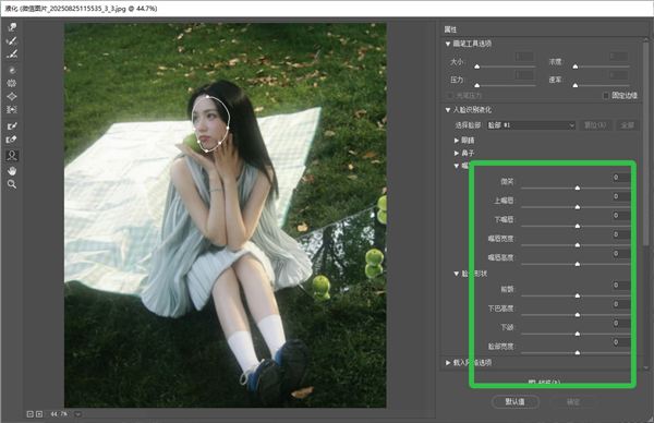 1、在液化滤镜的脸部感知功能中,增加了眼睛同步调整的选项。
