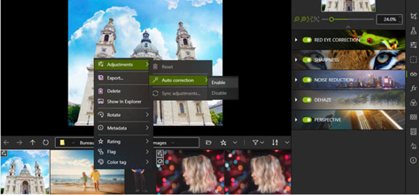 我们提到了可用性改进,这是最大的改进之一。胶片是Photo Studio界面底部的面板,用于显示选定文件中的所有图像。在版本11中,它现在是完全交互式的。这意味着在“照片编辑器”中,您可以按拍摄日期,相机,文件类型和一系列其他条件轻松过滤图像。您也可以直接从幻灯片中应用编辑。例如,您可以通过简单的右键单击自动校正图像,而无需在工作区中打开它。您也可以用相同的方式删除编辑。