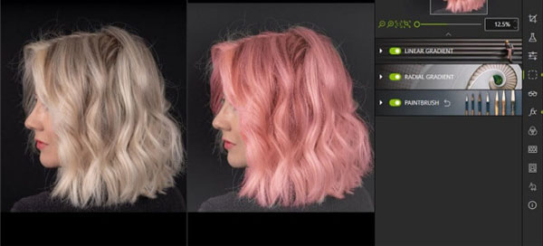 选择性润饰选项卡允许您使用渐变或画笔调整照片的特定部分。