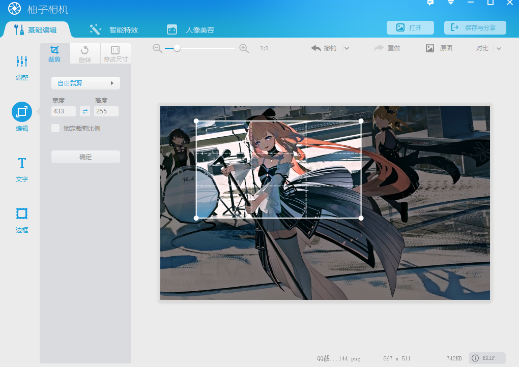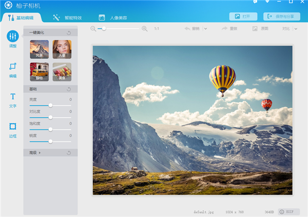 一、基础编辑可以对照片、人像等图片进行基础的修改。例如一键进行美化、图片的剪切以及添加文字、边框等等
