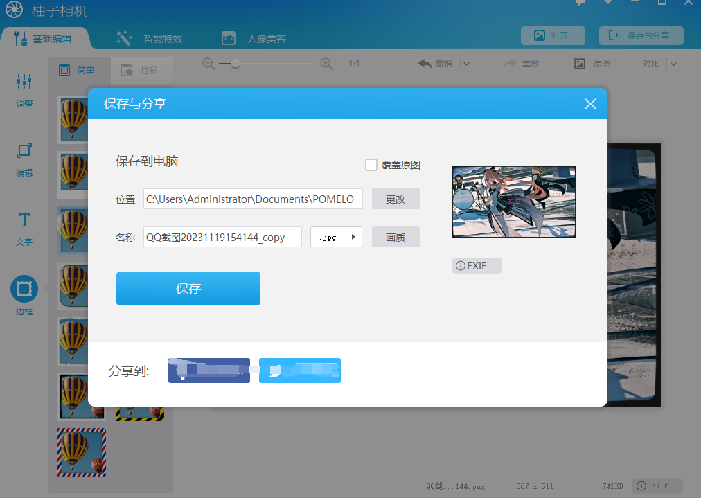 7、编辑完成之后点击右上角的保存到文件夹即可。