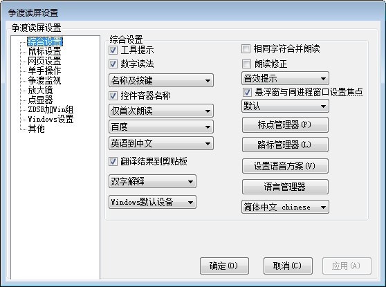 读屏是伴随我们使用电脑的每时每刻,语音质量的好坏也直接影响着我们使用电脑的情绪,争渡读屏具有丰富且完善的语音引擎,可以满足用户不同的个性化需求。支持目前大多数主流的语音接口,支持双语音库混合朗读,可以选择不同的声卡切换输出。用户可以随意安装自己喜欢的语音库,并且可以进行任意的搭配使用。双语音混合朗读配合多国语言,可以实现任何双语文字的朗读,比如中英混读、中日混读,英中混读,日俄混读等。