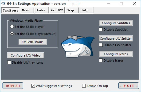 对该软件进行设置必须以管理员身份运行。该软件并不是播放器,而是针对Windows 7以上视频和音频播放增强