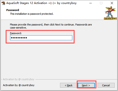 14、输入密码:countryboy 然后点击Next;